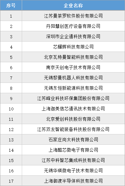 根據工信部統(tǒng)一部署,江蘇省工信廳于2024年9月2日發(fā)布了《關于江蘇省第六批專精特新“小巨人”企業(yè)和第三批專精特新“小巨人”復核通過企業(yè)名單的公示》,其中江蘇曼荼羅軟件股份有限公司、丹陽慧創(chuàng)醫(yī)療設備有限公司、深圳市企企通科技有限公司等17家創(chuàng)投集團被投企業(yè)入選第六批專精特新“小巨人”企業(yè)。